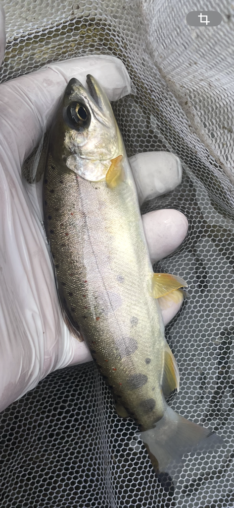 目がクリっと大きくて朱点も控えめで体表も紫に光る純然たる天然のあまご、これは16センチと小さいが食べて美味しいサイズなのでキープした。12センチ位のが沢山見える所に遭遇して2尾釣れたが当然リリース。放流されていないところの方が魚影が見えるって、どういう事ですか?